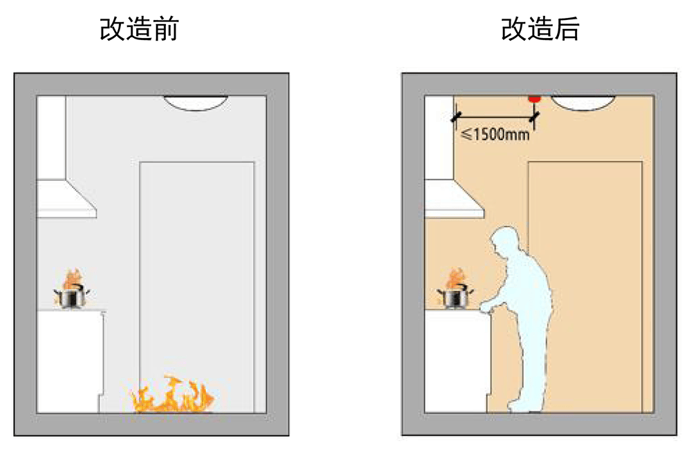 2、在天花板上方设置烟雾报警器,同时安装炉灶自动熄火掩护装置。