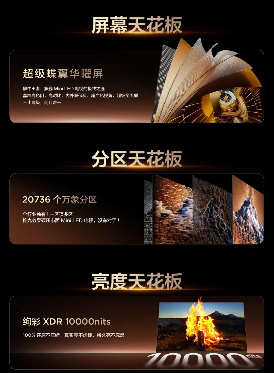 û¹ØÏµÒ»Ò»À´·ÖÎö£¬ÆðÊ×£¬ÓÚ»ÖÊÕâÒ»½¹µãÕ½³¡ÉÏ£¬X11LÒÀ¸½SQD-Mini LED¹¹½¨ÁËÎÞ¿ÉÏà±ÈµÄ±ÚÀÝ¡£ÆäÉ«²ÉÌåÏÖµ½´ïÁËÐÐҵи߶ȣ¬»¼ÉÏÒæÔÚ100% BT.2020È«¾Ö¸ßÉ«Óò£¬²»¹ÜÊÇׯÈȵÄÍíϼ¡¢Çà´äµÄÉÁÖÁíÓÐÊÇÉîåäµÄº£Ñ󣬶¼ÄÜʵÏÖ ºìÕý¡¢ÂÌ×¼¡¢À¶Í¸ µÄ¾«×¼ÁíÓÐÔ£¬É«²É´¿¾»¶ÈÓëÎȶ¨ÐÔÔ¶³¬´«Í³·½°¸¡£ÓÚ¿Ø¹â·½Ãæ£¬98…¼°æ±¾µÄX11LÓµÓиߴï20736¸öÍòÏó·ÖÇø£¬Õâ²¢²»ÊǼòÆÓµÄÊýÄ¿µþ¼Ó£¬ÍòÏó·ÖÇøÊÇÒ»Ì×´Ó·¢¹âоƬµ½ÆÁĻһÕûÌ×Ìåϵ¼«µÄ¿Ø¹â·½°¸£¬¿ÉʵÏÖ Ò»Çø¶¥¶àÇø µÄ¾«×¼µ÷¿Ø£¬ÏÕЩ¶Å¾øÁ˹âÔÎÕ÷Ïó£¬ÈÃ»ÃæºÚµÄÉîåä¡¢ÁÁµÄ´¿´â¡£ÅäºÏѤ²ÊXDR 10000nits·åÖµÁÁ¶È£¬X11LÄܺÁÎÞѹËõµØÁíÓÐÔ×î¸ß³ß¶ÈµÄHDR/Dolby VisionƬԴ£¬²»¹ÜÊÇÑô¹âϵĽðÊô·´¹âÁíÓÐÊÇÒ¹¿ÕÖÐÕÀ¿ªµÄ´¶»ð£¬¶¼ÄÜ·ºÆð³ö¼ÈÒ«ÑÛÓÖ¸»ÓÐϸ½ÚµÄ ³ö²ÊÁÁ Óë ºã¾ÃÁÁ ¡£¶øÐÂÒ»´úTSR AI¹âɫͬ¿ØÐ¾Æ¬£¬¸üÓÌÈçΪµçÊÓ´îÔØÁË ×ÔÁ¦ÏÔ¿¨ £¬¾ÓÉÀú³ÌÔÆ¶ËÄêÒ¹Êý¾ÝÓëÖÕ¶ËʵʱÔËËãµÄÐͬ£¬´Ó¶ÔÓڱȶȡ¢É«²É¡¢Çå³þ¶ÈµÈά¶ÈÖðÖ¡ÓÅ»¯»ÖÊ£¬ÄÄÅÂÊǵÍÂëÂÊÆ¬Ô´£¬Ò²ÄܾÓÉÀú³ÌAI¾«Îú½âÏñÔö²¹Ï¸½Ú¡¢AI Õé²Ê³Ä×ÅУ׼ɫ²É£¬ÈÃÿһһ·ù»Ãæ¶¼Á¬½áϸÄåÖʸС£ÔÙ¼ÓÖ®ÔÉú4K 144HzË¢ÐÂÂÊÓëMEMCÔ˶¯ÔöÇ¿¼¼Êõ£¬½øÒ»²½È·±£¸ßËÙ¶¯Ì¬»ÃæµÄÁ÷ÀûÓëÇå³þ£¬ÍêÉÆÂúÒâ¸ß¶ËÓ°ÒôϲºÃÕß¼°ÓÎÏ·Íæ¼ÒµÄ¿Á¿ÌÐèÇó¡£´ËÍ⣬³¬¼¶µûÒí»ªêׯÁµÄ¼Ó³ÖʵÏÖ±íÀïË«µÍ·´£¬ÄêÒ¹·ùÏ÷¼õÇé¿ö¹â×ÌÈÅ£¬ÈÃ»ÃæÓÚÈκιâÏß϶¼´¿¾»Í¨Í¸¡£